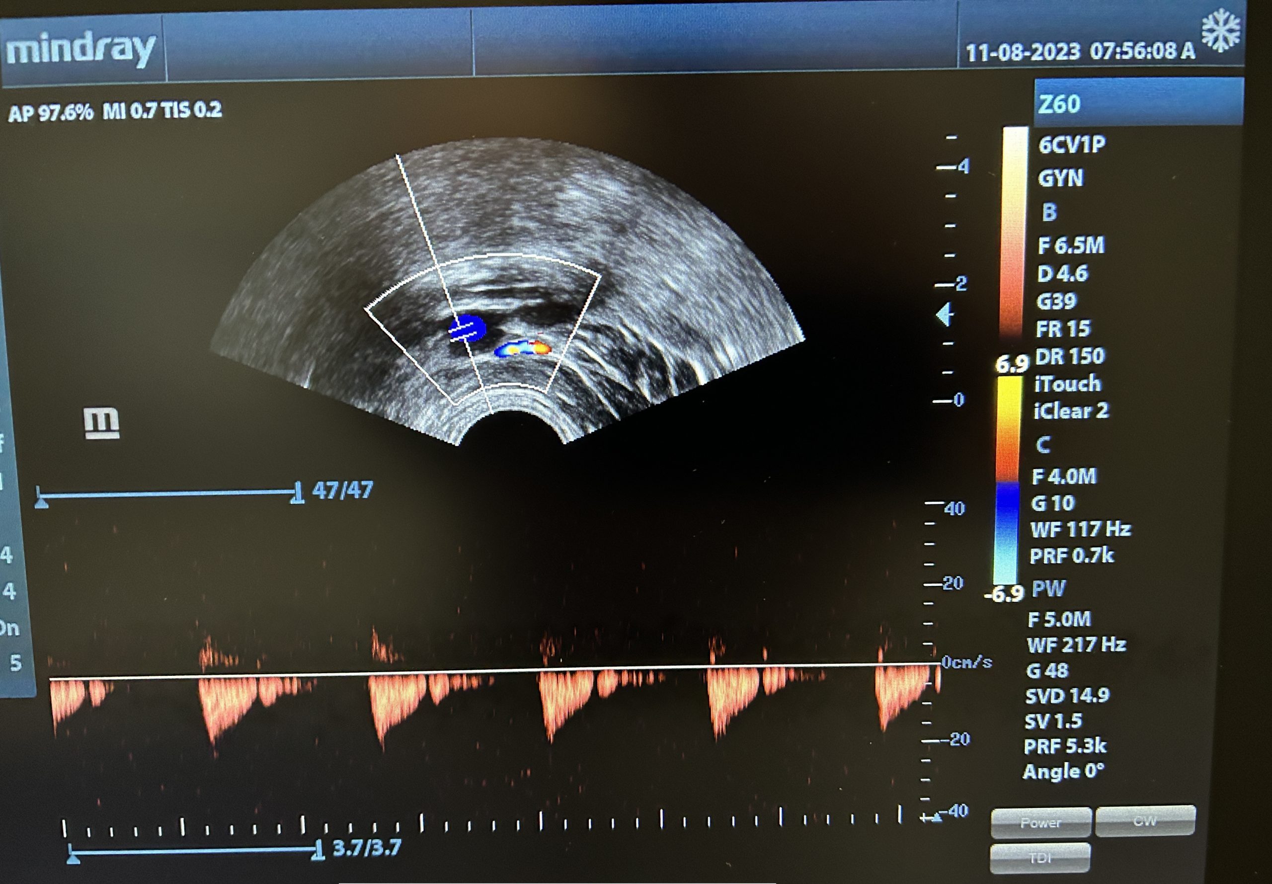 The 6CV1p has a frequency range of 5.0 MHz. - 9.0 MHz. and supports the following applications: Obstetrics, Gynecology, Urology.